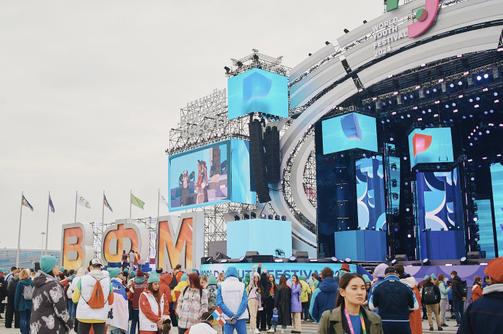 Робот Лаврентий поет "Катюшу" для участников фестиваля молодежи