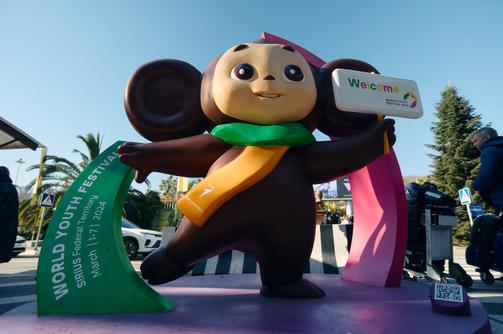 Участников Всемирного фестиваля молодежи приветствует Чебурашка
